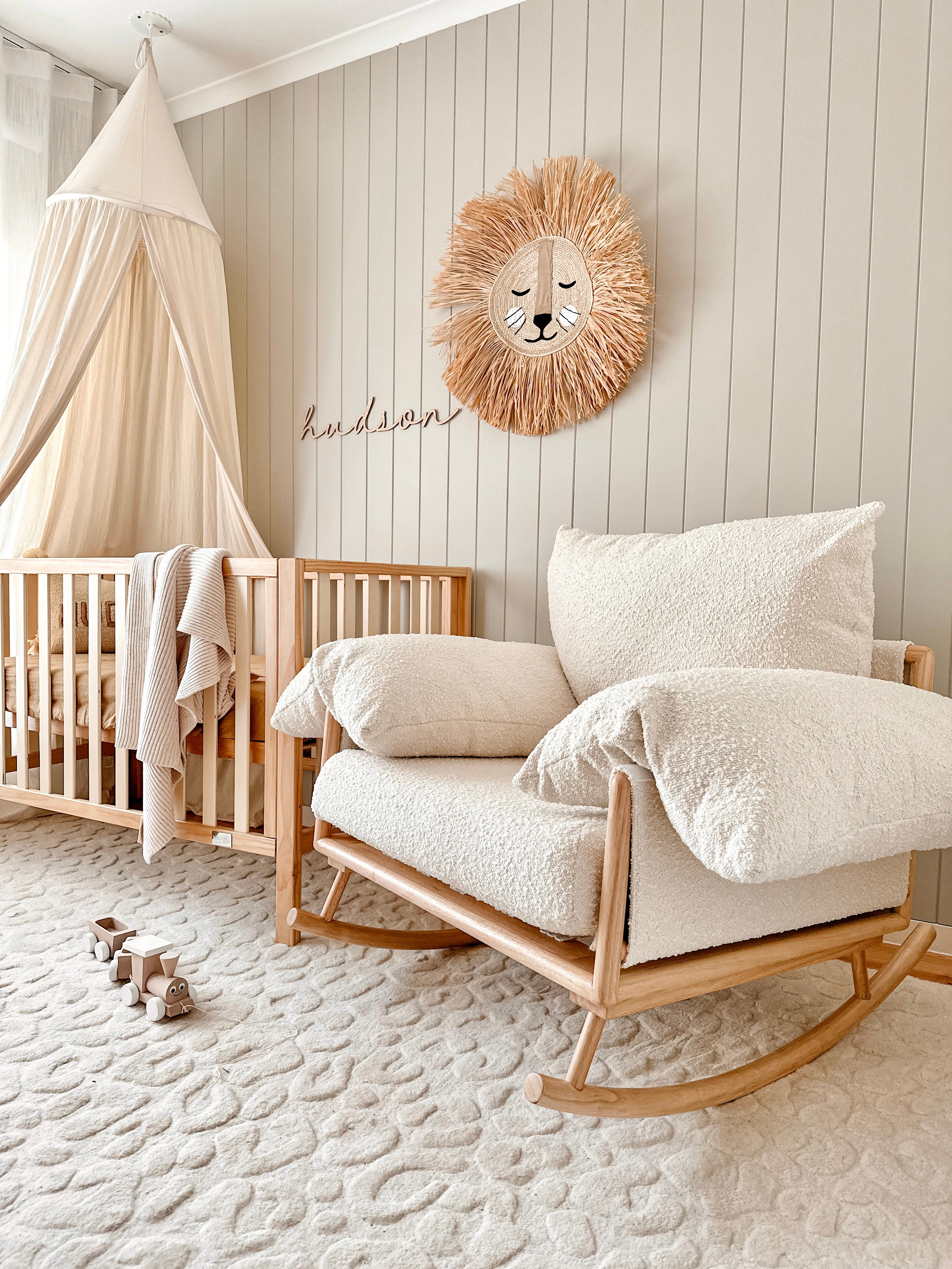Although designed for nursing mums, the gorgeous rocking chair set can be used long after nursing.
