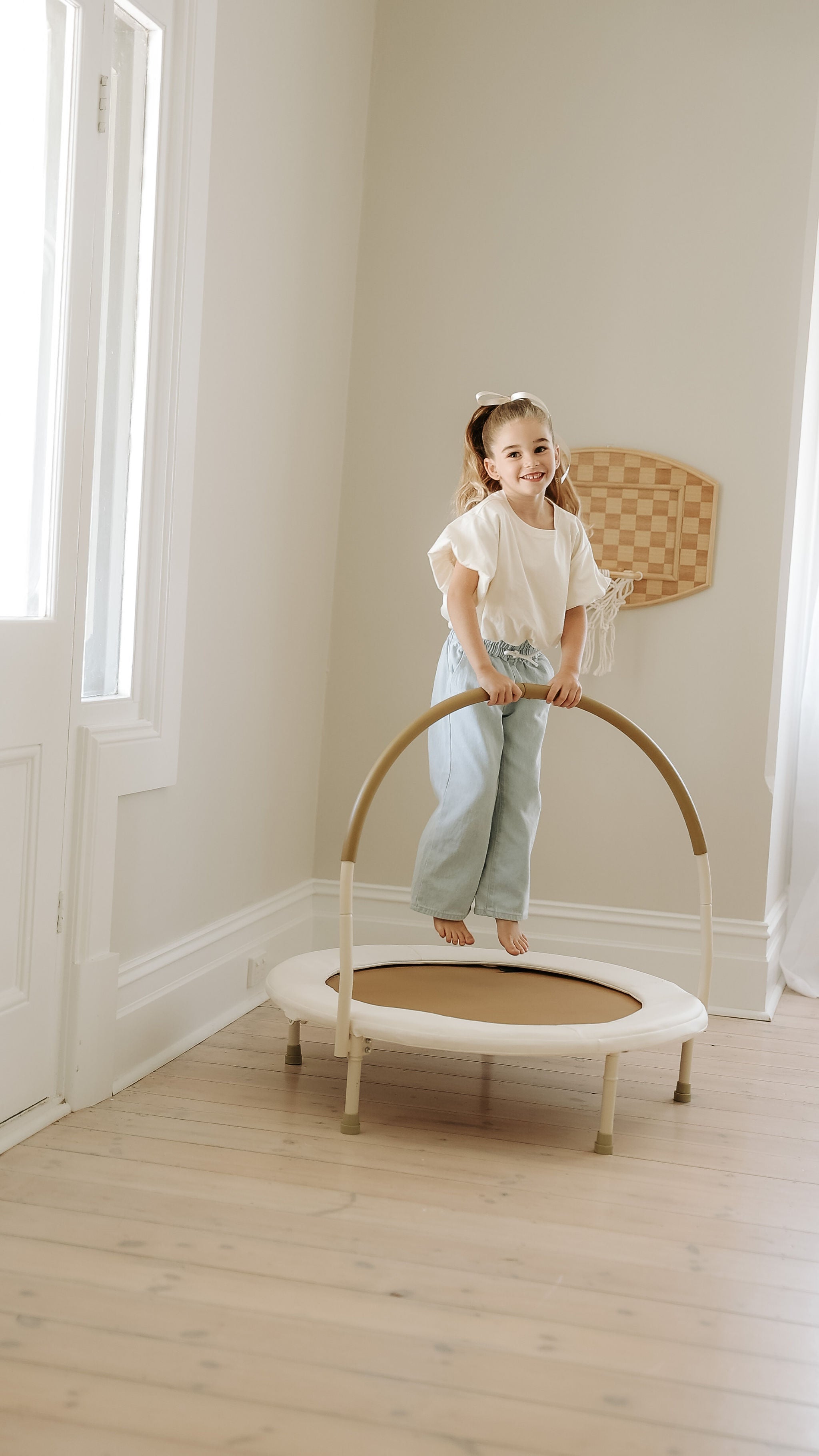 Active indoor play with style! The Poco Trampoline comes in soft neutral tones to fit seamlessly with the decor of your home. Safe low to the ground design.