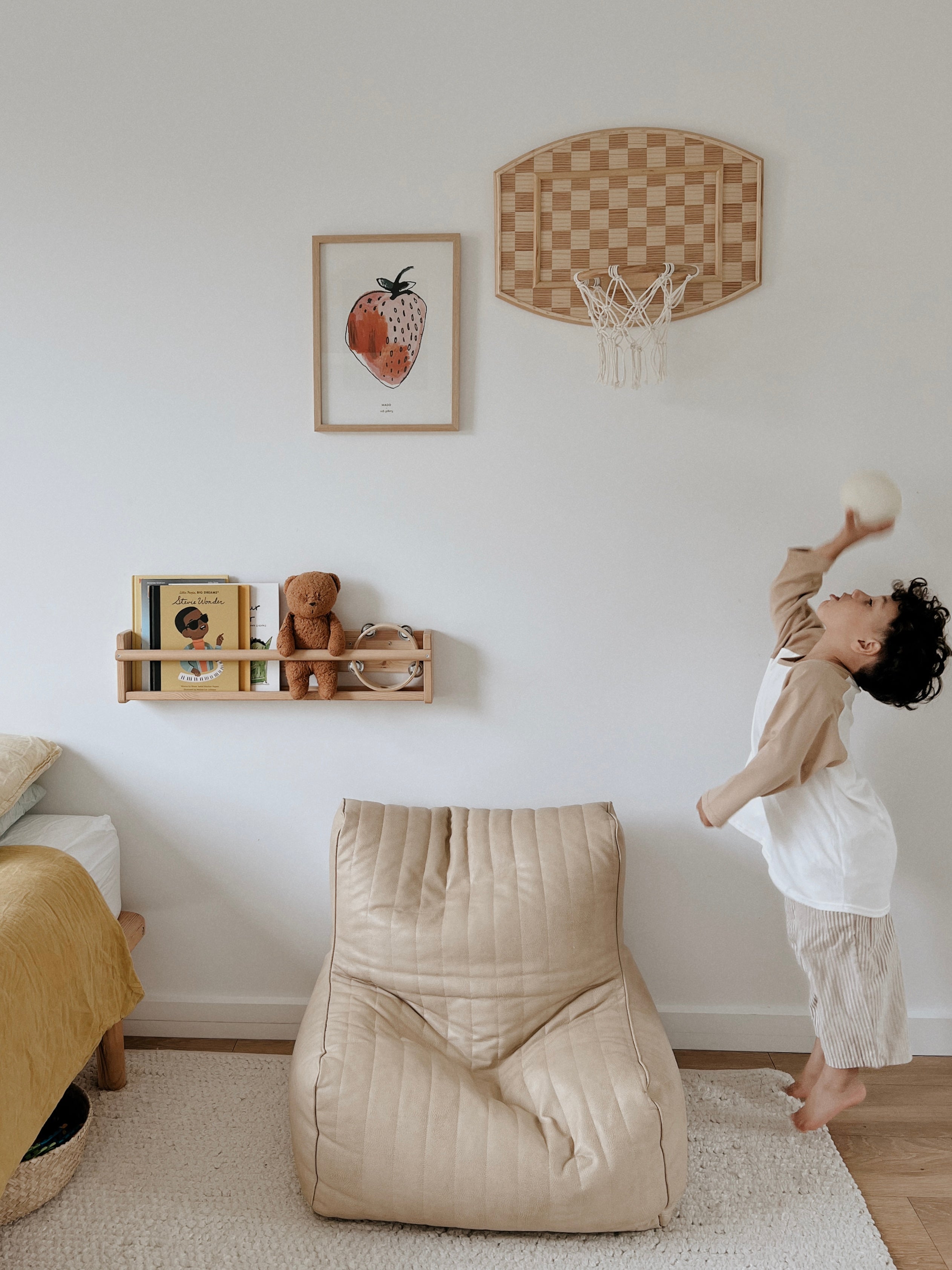Designed for mini hoopers! The Quinn Basketball Hoop is a sleek addition to any kids room. Featuring a timeless checkerboard wood finish.