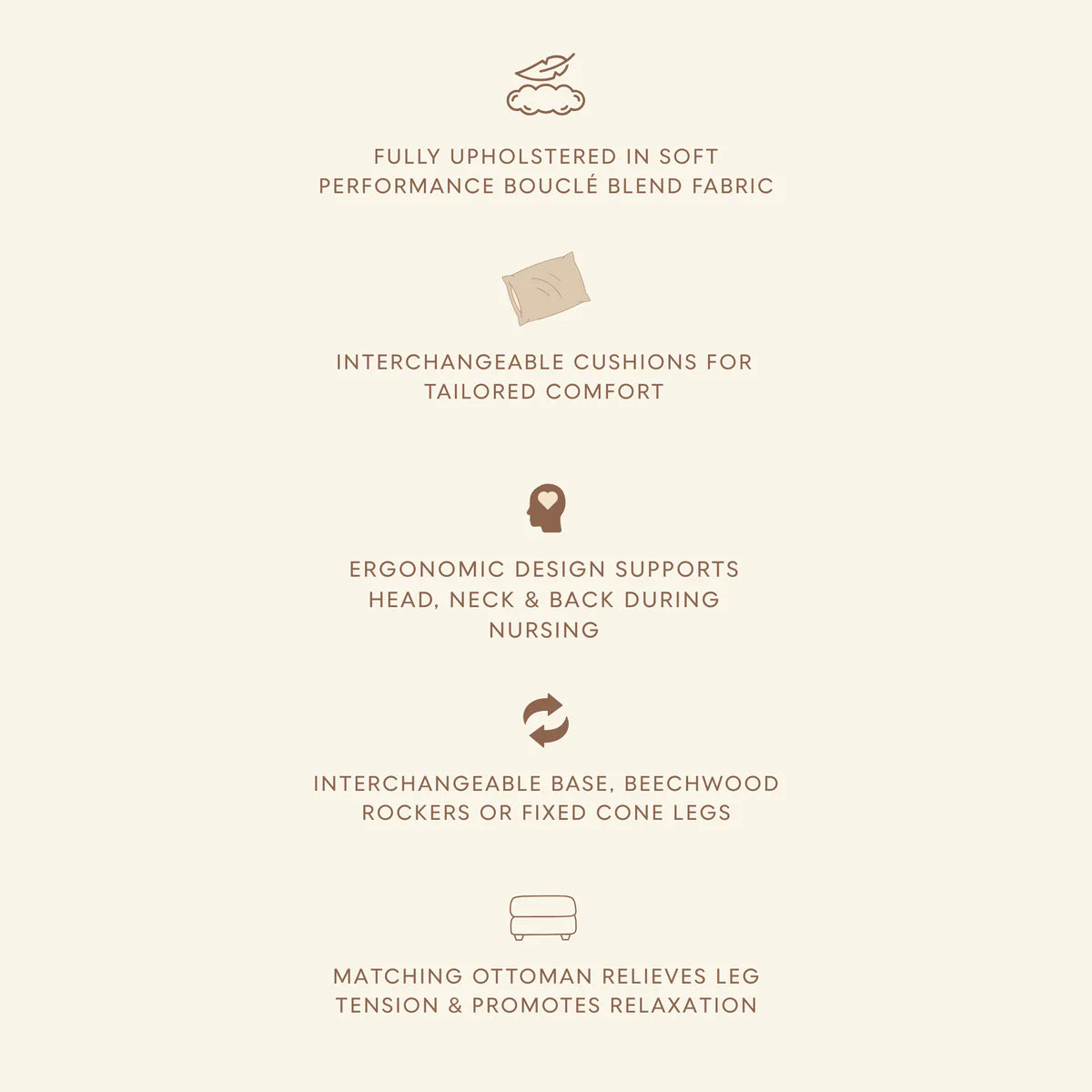 Although designed for nursing mums, the gorgeous rocking chair set can be used long after nursing.